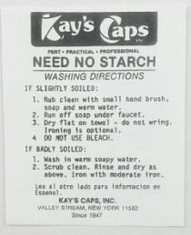 ป้านอมได้เป็นตัวแทนขายหมวก Kay's Caps ซึ่งเป็นผู้ผลิตหมวกพยาบาลรายแรกๆของอเมริกา และมีประวัติความเป็นมายาวนานกว่า 40 ปีแล้วค่ะ ป้านอมรู้จักหมวก Kay's Caps ตั้งแต่เมื่อยังทำงานอยู่สมัยสาวๆ หมวกที่นำมาแนะนำนี้เป็นหมวกที่ใช้วิธีการผลิตแบบสมัยก่อนเลยนะคะ เพราะผู้ผลิตยังใช้วิธีการที่ถ่ายทอดกันมาตั้งแต่รุ่นก่อน จึงอยากจะแนะนำสินค้าใหม่ให้ลูกค้าของป้านอมเป็นอีกทางเลือก หมวกของ Kay's Caps จะมีสีขาวออกครีม ตามแบบดั้งเดิม ขนาดจะเล็กกว่าขนาดมาตรฐานเล็กน้อย รูปทรงสวยงามค่ะ